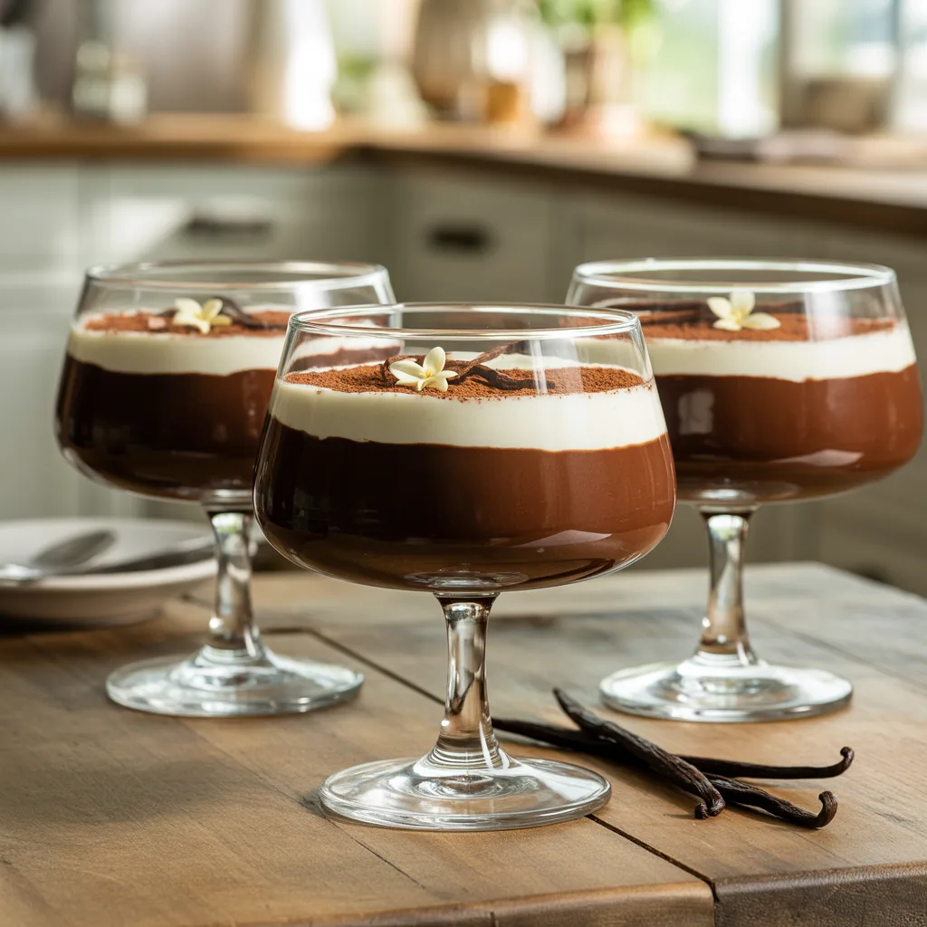Quand les envies de douceur surgissent sans prévenir et qu’on a pas du tout envie de sortir le fouet ou d’allumer le four, on fait quoi ? On craque sur un dessert industriel ? Ah non, pas question ! Je te propose plutôt de plonger dans cette recette de verrines chocolat-vanille, une petite merveille qu’on prépare en un clin d’œil, sans aucune cuisson. Je te parle d’un dessert simple et rapide qui a tout du grand classique revisité en version fun et ultra gourmande. C’est le genre de petite folie que ma grand-mère aurait adoré moderniser. Allez, enfile ton tablier, c’est parti pour un moment de pur plaisir !